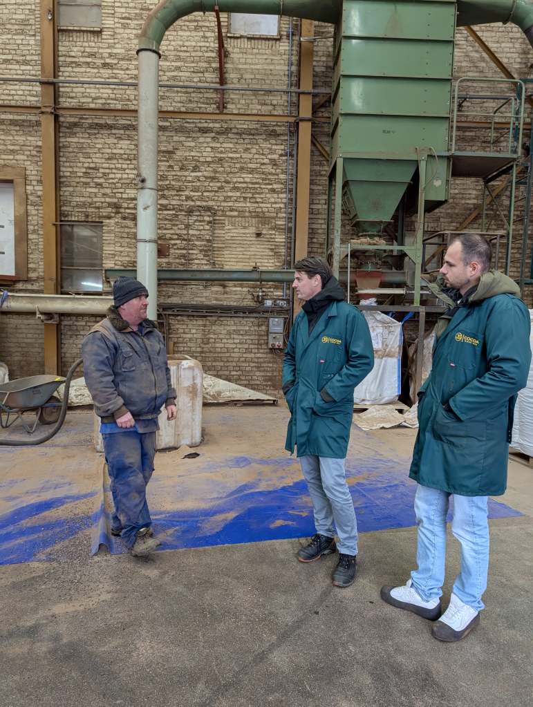 Eerst even terug naar afgelopen vrijdag, toen we op bezoek waren bij JS Cocoa in Zaandam op uitnodiging van directeur Pieter Schulting. Hier hebben we in de cacaofabriek gezien hoe de cacaobonen uit West-Afrika worden verwerkt tot cacaopoeder, cacaoboter en cacaomassa. Deze producten zijn bestemd voor onze chocolade, chocoproducten en zelfs cosmetica. Daarnaast hebben we geleerd over de verschillende uitdagingen in de huidige cacaomarkt.