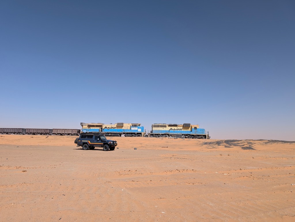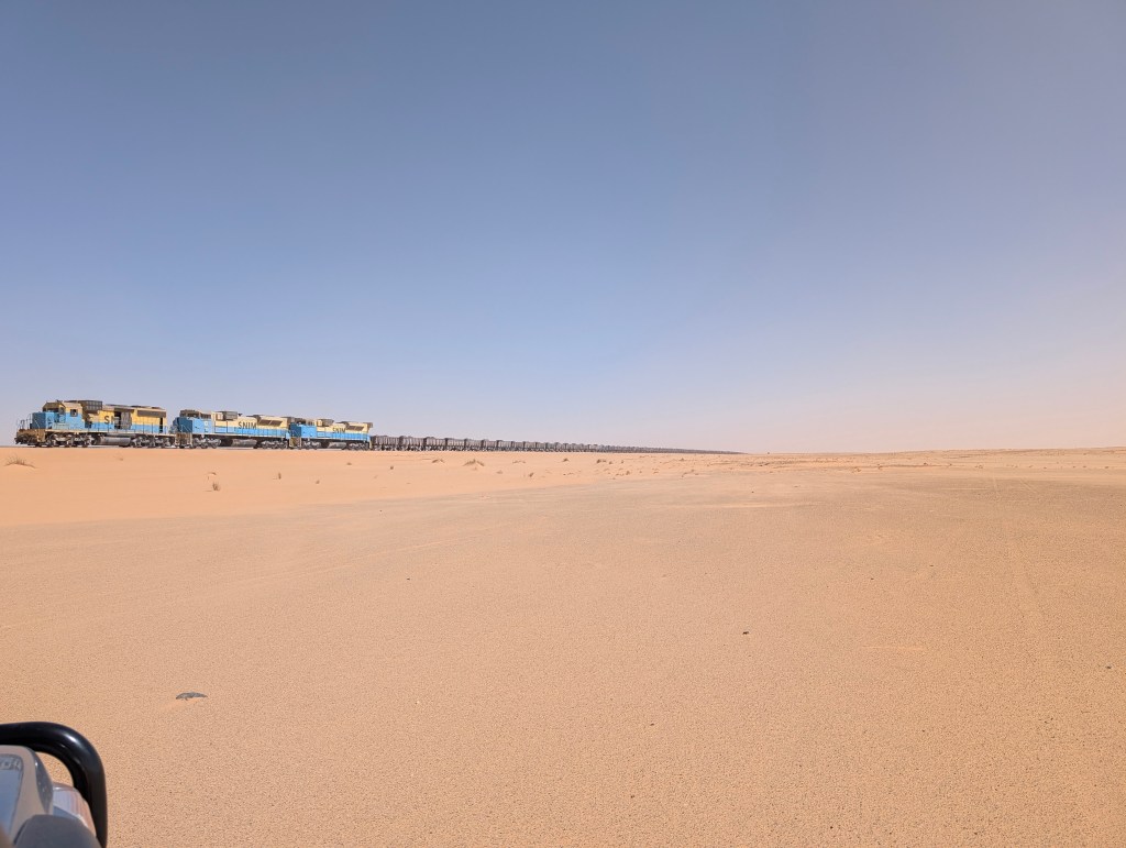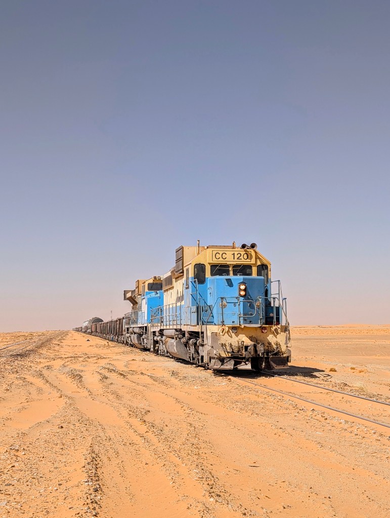Van Nouadhibou zijn wij in oostelijke richting vertrokken, we volgen hierbij het spoor van de IJzererts trein. Het duurt niet lang voordat we de beruchte trein zelf te zien krijgen. De trein vertrekt vanuit het binnenland en legt meer dan 700 KM af op een enkel spoor. De langste treinen kunnen wel 3 KM lang zijn. Ontzettend gaaf om deze monsters voorbij te zien razen in een verder lege woestijn.