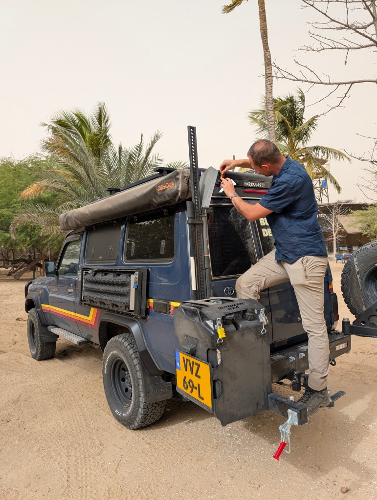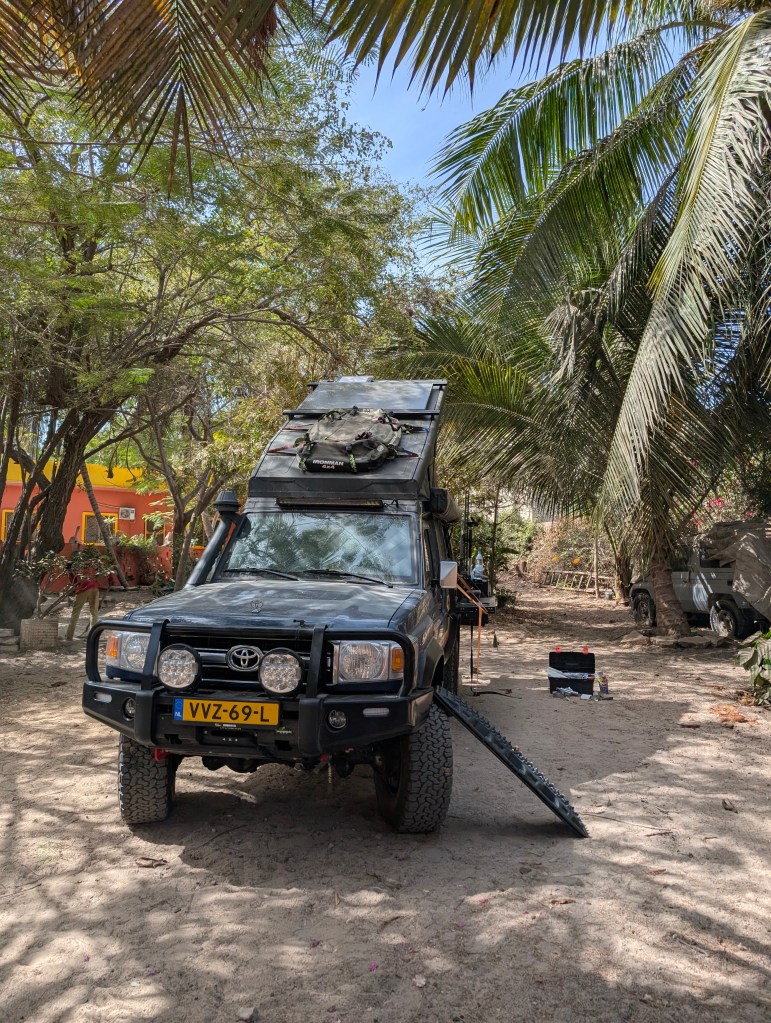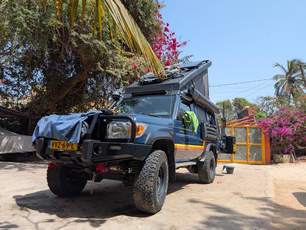 Tijd om naar Dakar te gaan. Met de auto rechtstreeks naar de Douane in de haven om onze CdP te laten stempelen, we kwamen om 14h30 aan maar ze hadden pauze…. Tot 15h30. Gelukkig zat aan de overkant een Toyota garage waar gelijk een beurt konden laten doen. Altijd fijn om bij een officiële Toyota garage te komen. Na de beurt gelijk een onze stempel gehaald en z.s.m. de stad uit gegaan, richting Hermina in Malika, een voorstad van Dakar.