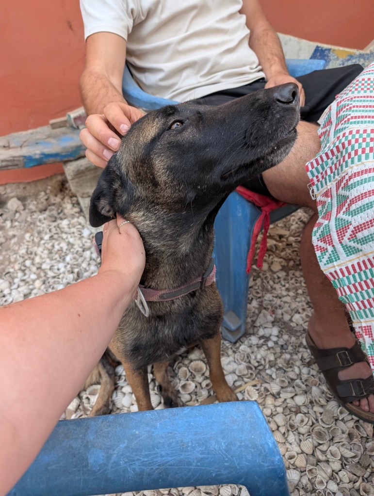 Hermina woont hier samen met Alfred en nog wat jongens, zij hebben ons geholpen met verschillende dingen aan de auto te maken zoals de zijtafel en een muggennet voor achterin. En natuurlijk de superlieve Belgische herders/Mechelaars Saar, Kokkie en Tito en in het andere huis Matu.