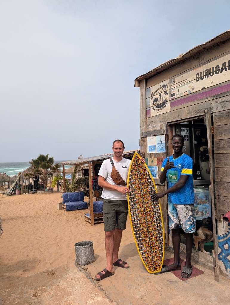 Deze dag in de ochtend vroeg begonnen met wat klusjes voordat we in de middag met de taxi naar de Malika Surfschool zijn gegaan. Hier hebben we Pape Diouf ontmoet, hij is de eerste Senegalees die surfboards maakt in Senegal. Het surfen is Senegal is een groeiende sport en ook eentje die toeristen aantrekt. Pape maakt al jaren surfboards maar heeft sinds zijn deelname aan Orange Corners zijn bedrijf kunnen laten groeien. Wil je hier meer over lezen? Ga dan verder in de blog BDB Bezoekt Senegal ……