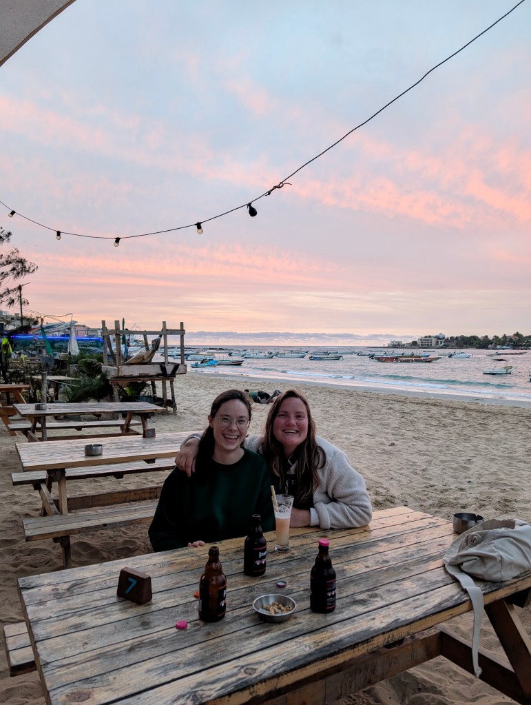 Zwemmen in de Atlantische Oceaan was ons toch een beetje te koud maar we hebben een heerlijke chille dag gehad bij de Zebrabar. Enige probleem: onze tafel aan de zijkant is afgebroken. Oops!