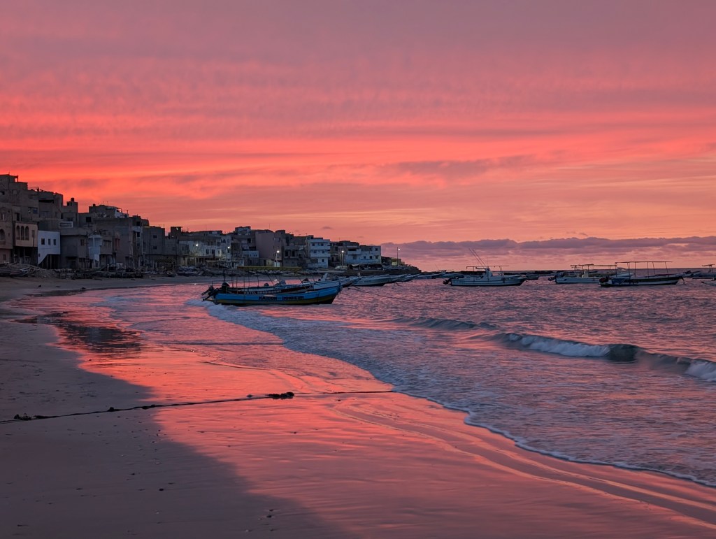 De politie werd gebeld en kwam na een uur kijken wat er was gebeurd. Veel konden ze helaas niet doen. Na nog 2 uur onderhandelen is er 1 persoon van de boot afgegaan. In de tussentijd waren er zo’n 50 personen bij gekomen. Nadat deze persoon van de boot ging zijn we overbeladen vertrokken naar Dakar en veilig aangekomen. Jasper en ik zijn naar een hotel in de stad gegaan waar we sushi hebben besteld en op de rooftopbar hebben opgegeten.