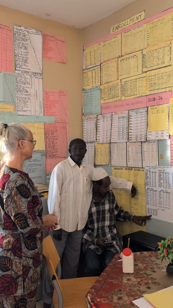We bezochten samen met Henriëtte scholen die de MRC Holland foundation heeft gebouwd, maar waar ze inmiddels weer nieuwe klaslokalen nodig hebben (de bevolking in Gambia blijft namelijk groeien). We bezochten ook scholen die renovaties nodig hebben, door lekkende daken of uit elkaar vallende muren, omdat ze eerder niet degelijk zijn gebouwd. Wanneer Henriette scholen bezoekt is ze streng en duidelijk, de administratie moet goed op orde zijn en alles moet netjes onderhouden worden. Als er een teken van verwaarlozing is zal er geen nieuw klaslokaal komen.