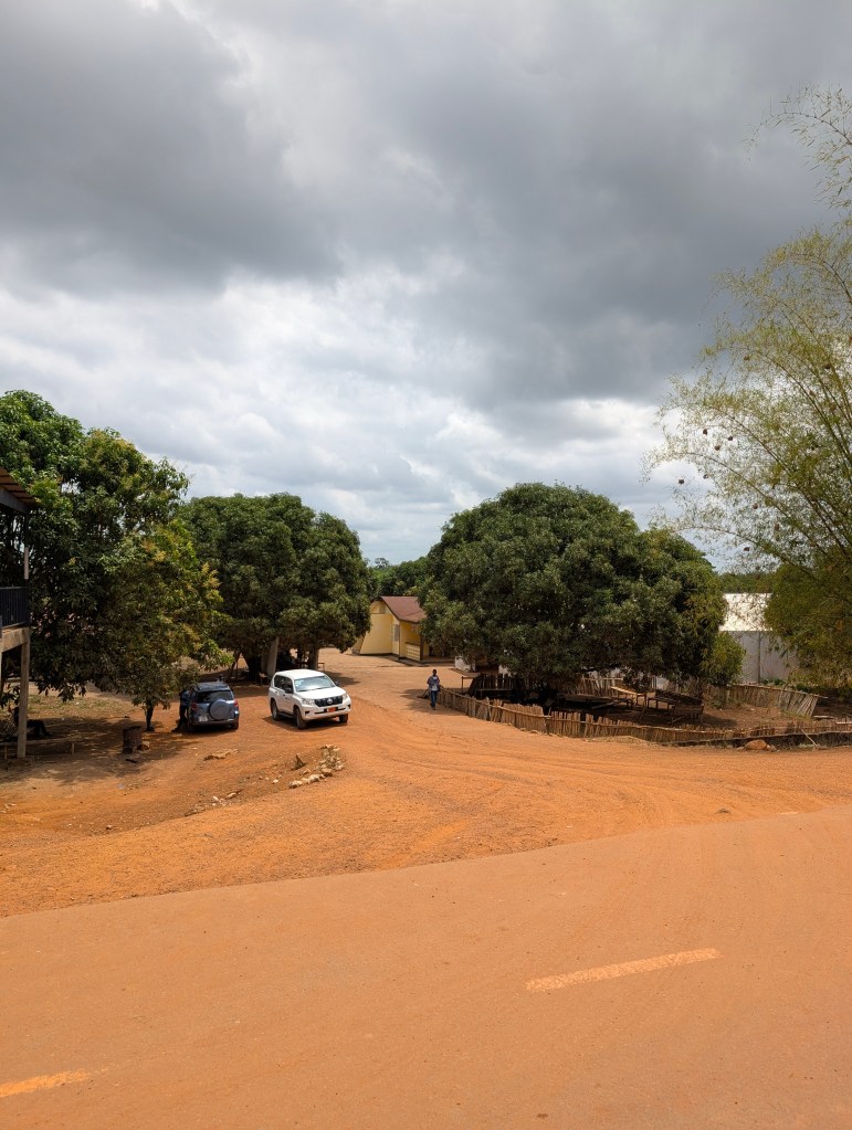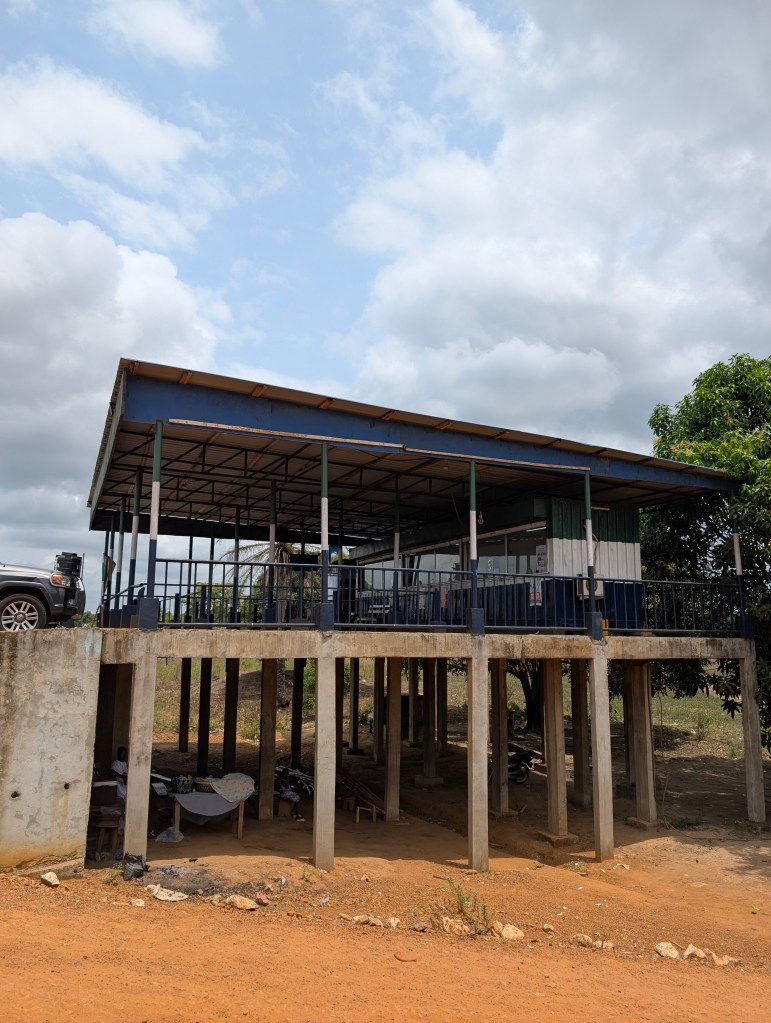 Vervolgens loop je terug naar boven en ga je naar het blauw/witte/groene gebouw op palen dat aan de rand van de weg staat (ook links van de weg). Hier stempelen ze je Carnet de Passage uit.