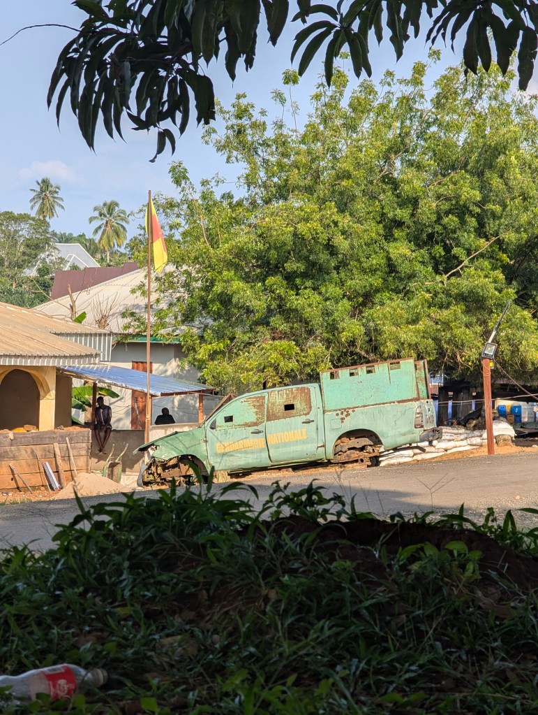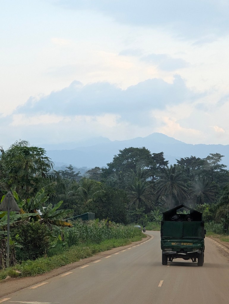 Na lang rijden met soms een stop van 2 minuten en soms van een kwartier, altijd zonder enige aankondiging, stopten we in het donker in een stadje. Hier gaf Patrick ons voor het eerst een serieuze update zonder machtsvertoon of spelletjes: Er was een aanval van separatisten geweest in een dorp voor Buéa (onze eindbestemming). We wachten hier op een sein van het leger dat de situatie onder controle is.