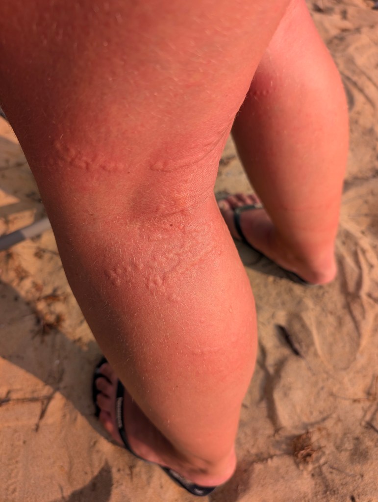 We beginnen de dag met een heerlijke massage van Sandrine, die een paar dagen geleden haar salon op het strand heeft geopend. Een echte verwennerij, helaas word ik deze zelfde dag door een kompaskwal aangevallen. Wat een pijn!!!! De plekken blijven nog 3 weken zichtbaar op mijn been.