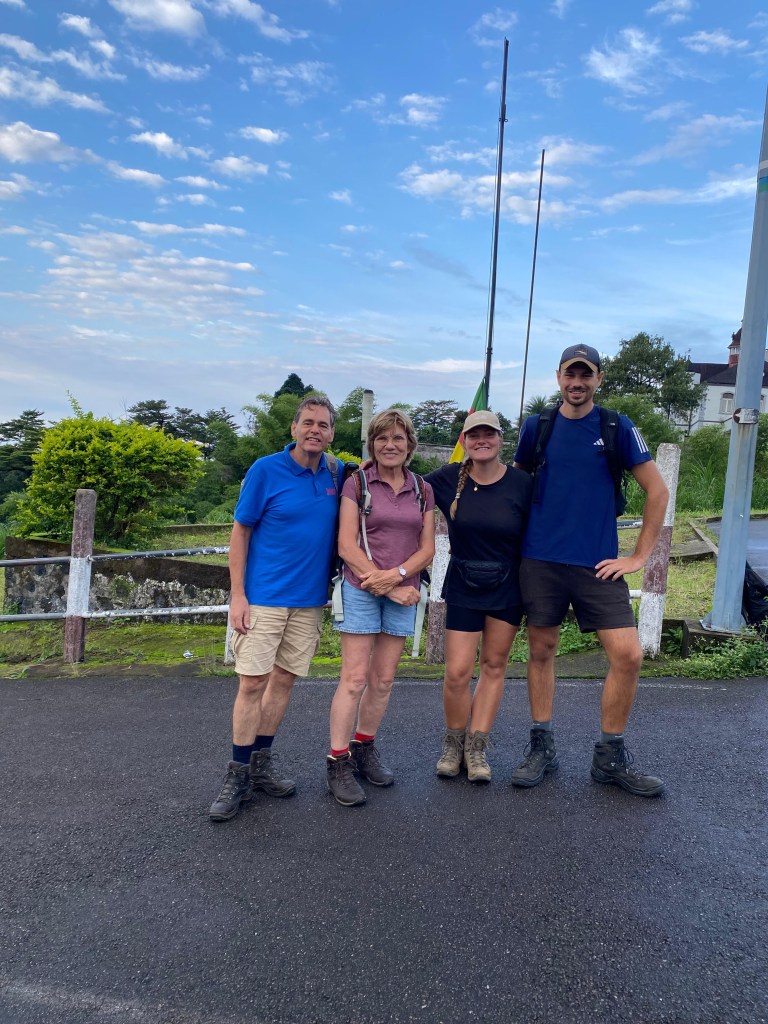 Deze dag dalen we door graslanden met prachtige uitzichten en vervolgens dichtbegroeide jungle af naar de voet van de berg. Het is een enorm stijle en uitdagende afdaling en halverwege begint het opnieuw keihard te regenen. Het pad verandert in no time in een glijbaan en waterval in een. Jasper en Felix lopen ver voorop omdat Jasper dan het minst last heeft van zijn knie. Als vier verzopen katjes komen we weer aan in de bewoonde wereld. Iedereen heeft het zwaar maar de moed zit er nog goed in!
