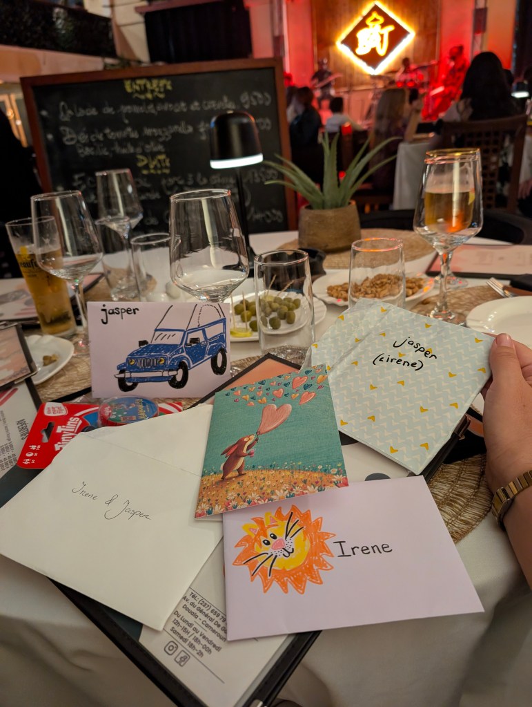 In de avond gaan we een hapje eten bij Le Boj waar ze livemuziek en preformances hebben. We krijgen van pappa en mamma allerlei leuke kadootjes en kaarten van onze vrienden en familie in Nederland.
