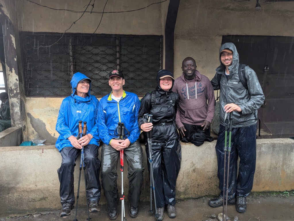 We staan voor zonsopgang op en vertrekken met onze rugzakken in de taxi naar de voet van de berg. Het zonnetje breekt door het en lijkt een heerlijke dag te worden. Onder aan de berg ontmoeten we Felix en Henri, zij zullen ons de berg op helpen. Omdat we toch meer spullen mee hebben dan gedacht (Felix moet ook al het water en eten voor de komende 3 dagen meetillen), belt Felix een vriend.
