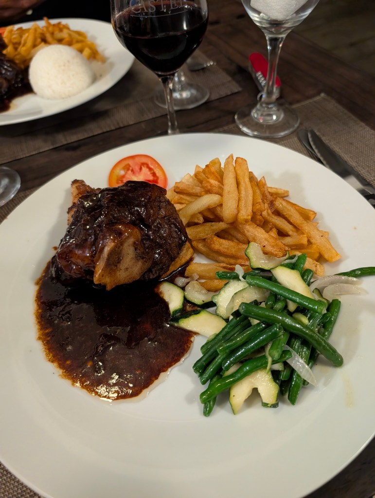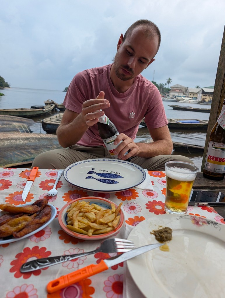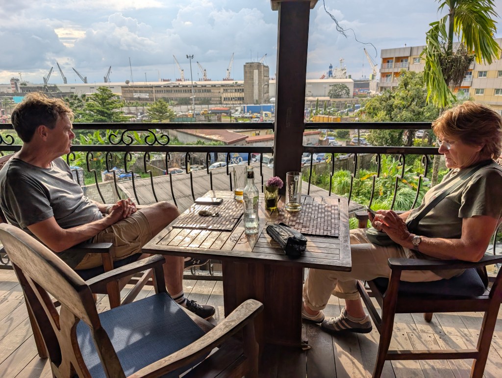 Omdat Hotel Ilomba vol ziet moeten we verplaatsen. We besluiten naar Hotel du Phare te gaan, naast de vuurtoren van Kribi. Dit is ook gelijk het Franse consulaat en de toko wordt gerunt door een Fransman. Dat kan je ook wel merken aan het heerlijke eten.