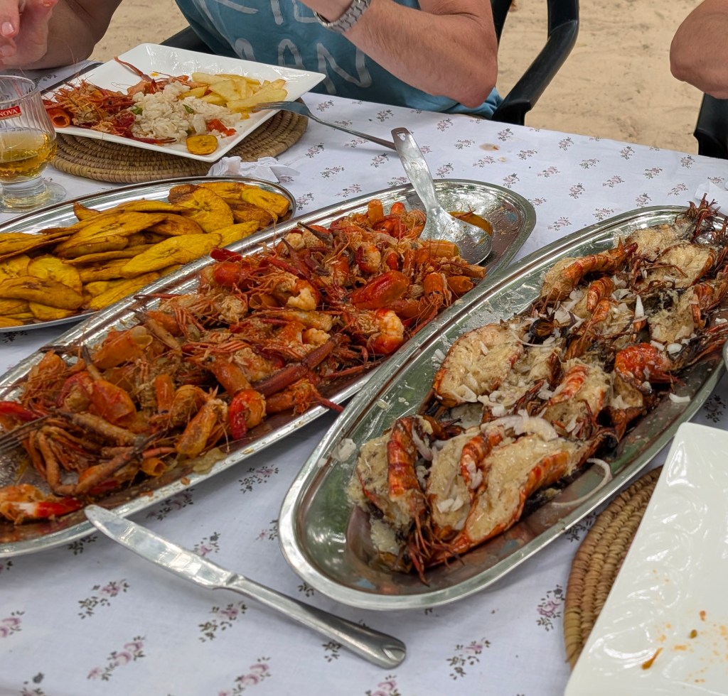 Vanaf het hotel kunnen we over het strand naar de watervallen lopen die in de zee uitkomen. Ik koop hier vervolgens wat kunst bij een kraampje en we hebben verder een relaxte dag. Aan het eind van de middag besluiten we om in het dorpje aan het strand te gaan eten, wat een goede keus!