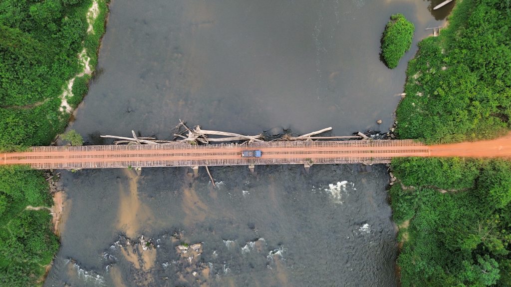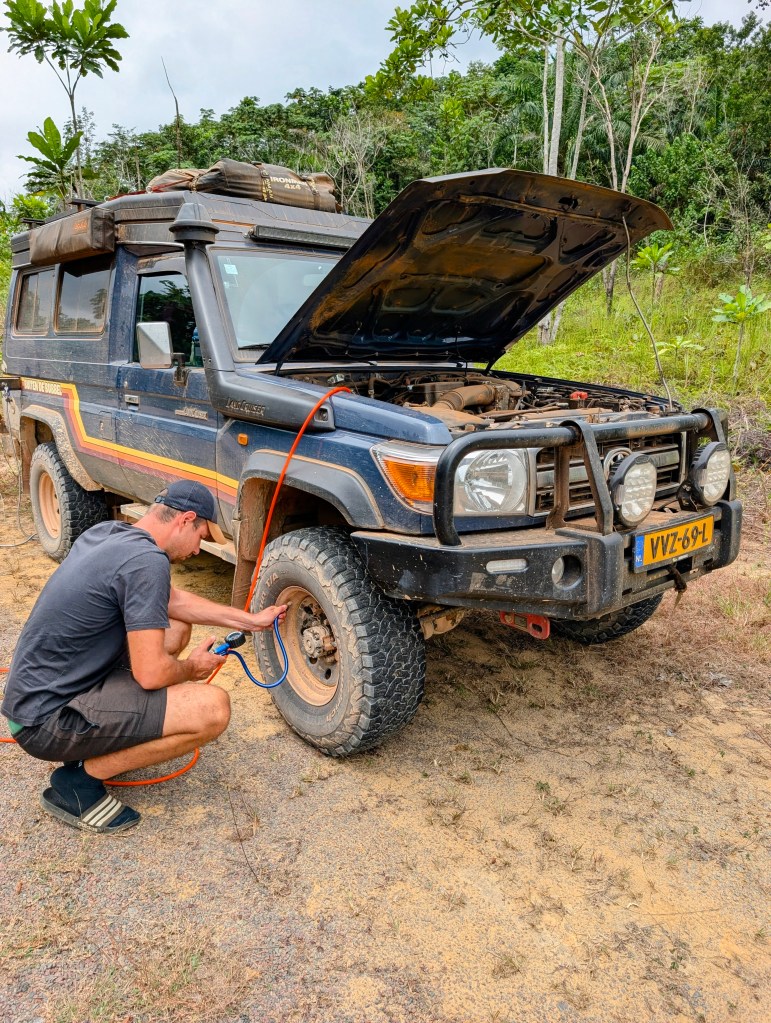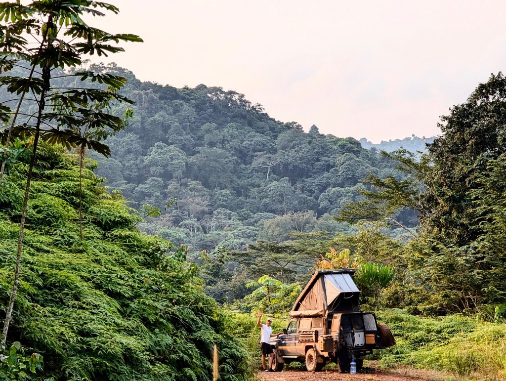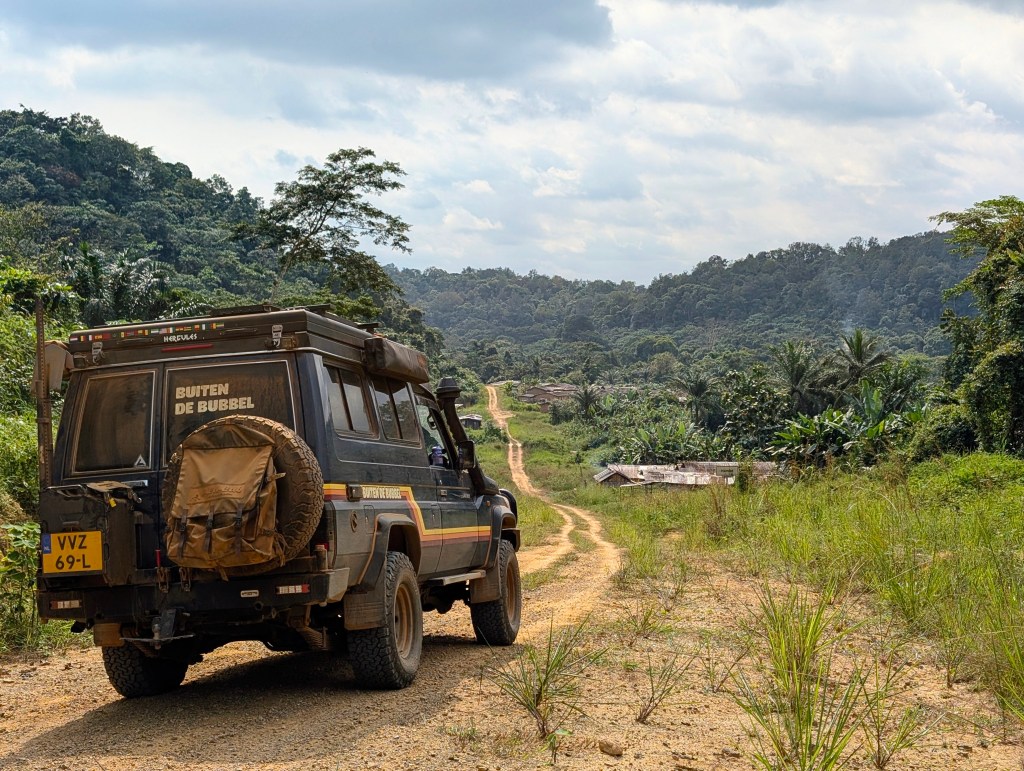 In deze uitgestrekte jungle van Gabon en met een Toyota Land Cruiser als vervoer wilden we in Gabon minstens één uitdagende route door de jungle rijden. Er zijn in Gabon geen 4×4 routes met gps-punten, de enige manier om je te verplaatsen is aan locals de weg vragen. Vertrouw vooral NIET op Google maps. Sommige van de wegen die hier aangegeven staan zijn ingestort of weggespoeld.