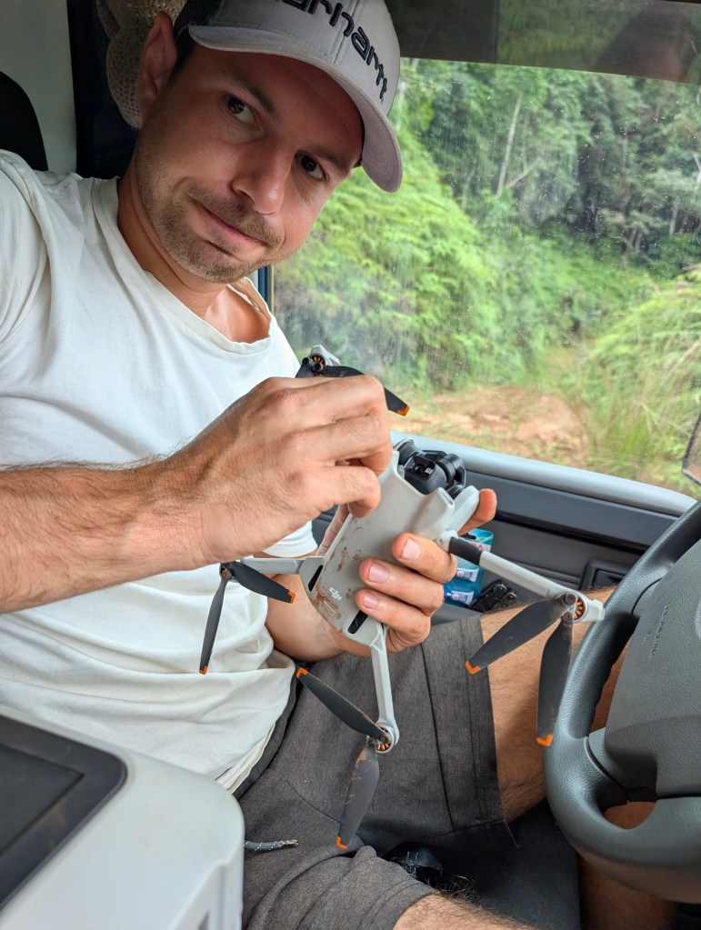 We vervolgen onze tocht en maken wat prachtige beelden met de drone. Bij het laatste shot stond er echter opeens een boom in de weg… Wie had dat gedacht in de jungle? Jammer maar helaas… Drone kapot!