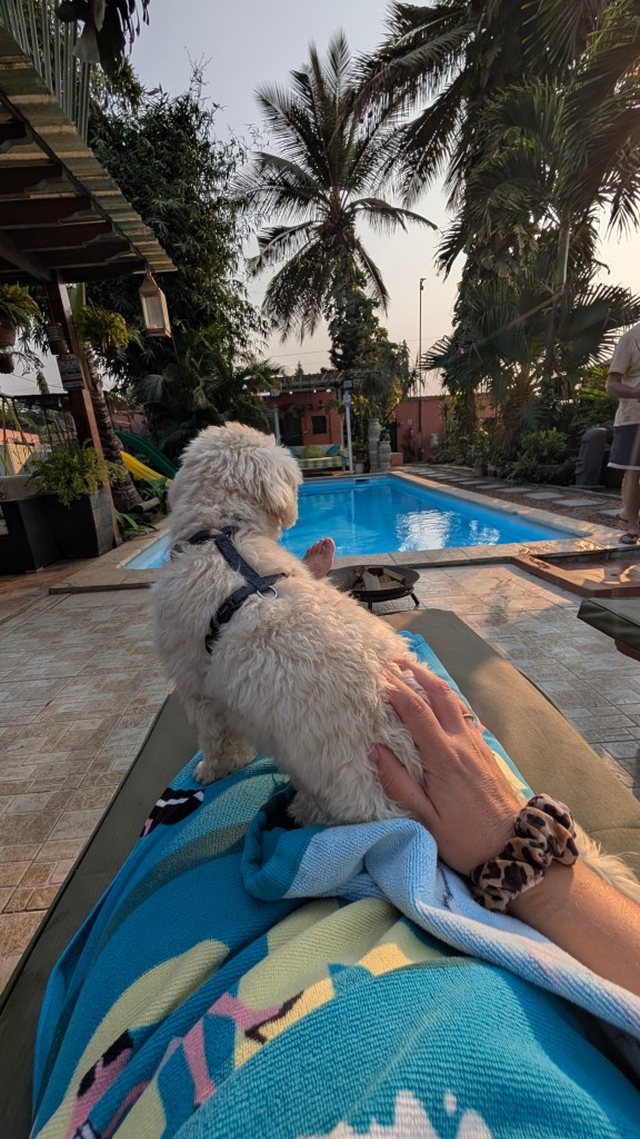 Aan het einde van de dag proberen we weer de covers te regelen maar degene die ze maakt is nu zogenaamd in Vietnam…. Huh? We zijn doodmoe en gaan terug naar Luis waar inmiddels ook iemand anders staat. Een Zuid Afrikaanse vrouw genaamd Nikki. We zijn zo moe dat ik snel een duik in het koude zwembad neem en we alleen een instant noodle soepje eten met een gekookt ei.