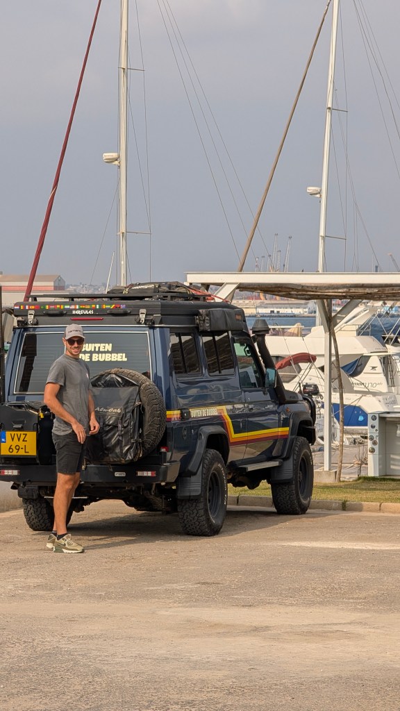 Tijd voor boodschappen. Dat klinkt misschien makkelijk maar dit is in Afrika altijd een dagtaak. Na de boodschappen trakteren we onszelf op een heerlijke lunch in de stad bij Galeria Cafe. We besluiten deze avond nog een avondje in Luanda te slapen maar wel op een gratis overlander plek bij de jachthaven. Wat een parel van een plek!
