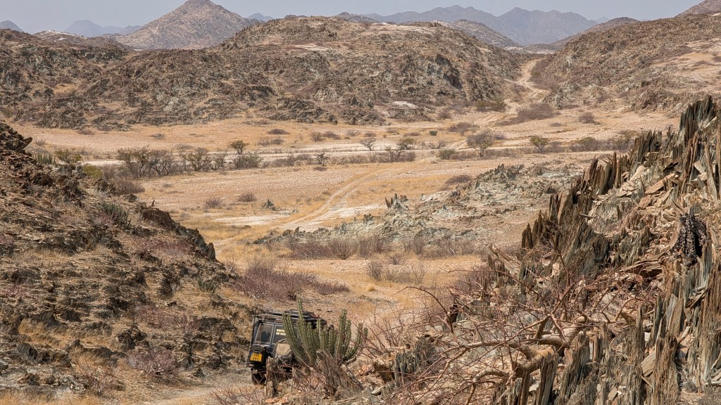 Het is bizar hoe veel het landschap in Angola veranderd in elke kilometer, we genieten de hele weg van woestijn naar bergen, kliffen en watervallen, alles is uniek hier.